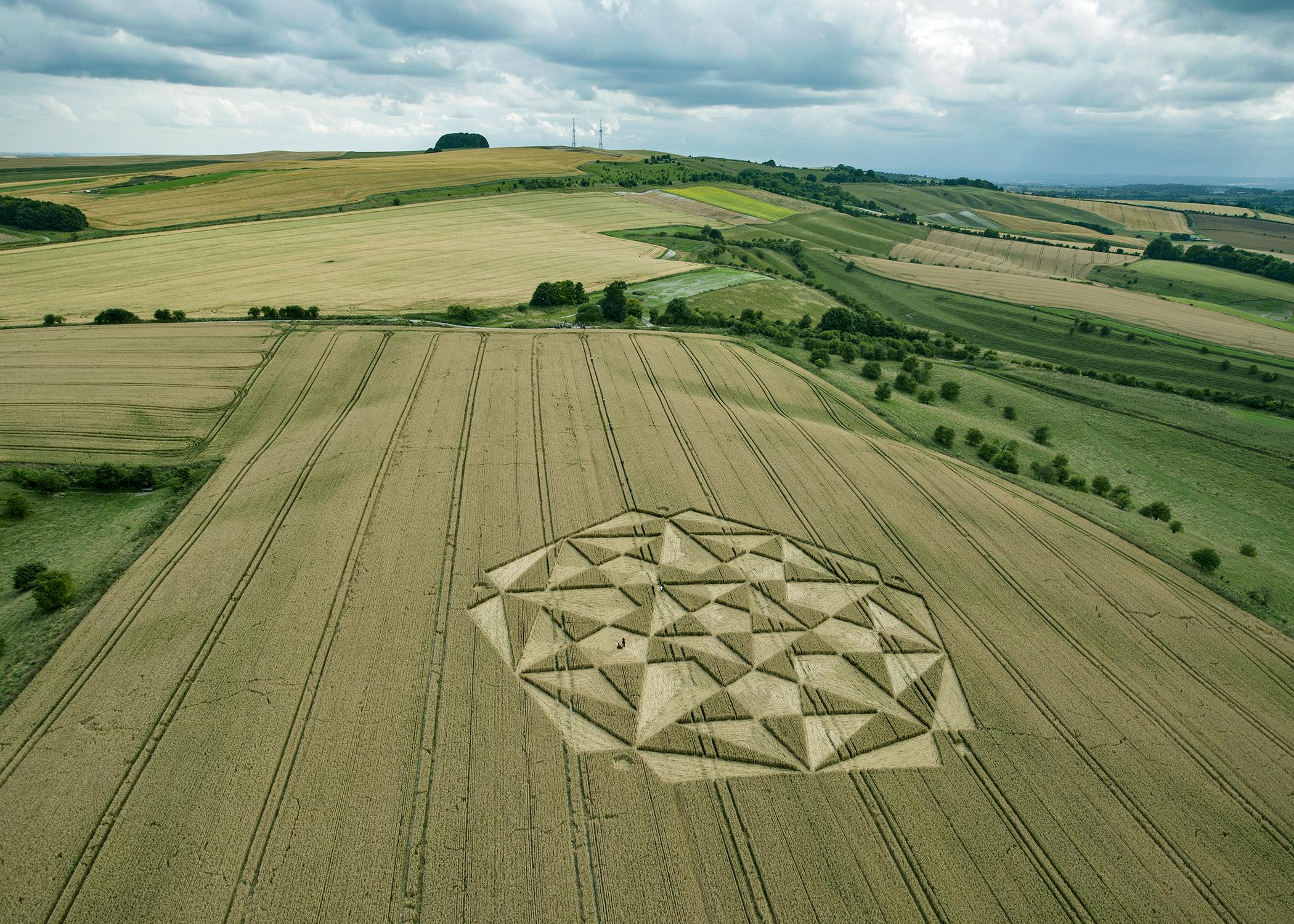 This design is made from beautiful five-fold geometry, pentagrams and pentagons combine to create a sublime image. We have seen five several times this year – including in the first recorded formation of this season at East Kennett.